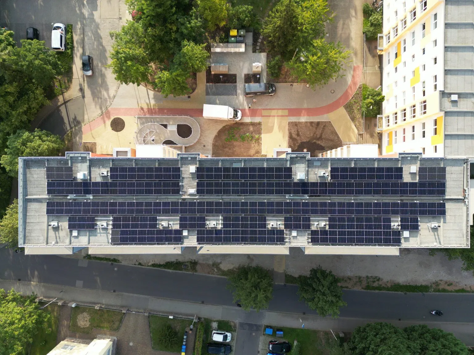 Unser bisher größtes Mieterstromprojekt konnten wir in der nördlichen Stadt Flensburg realisieren. 3 Mehrfamilienhäuser mit 43 Wohneinheiten wurden in einem Quartierskonzept mit Photovoltaik-Anlagen und Ladesäulenverbund erschlossen.